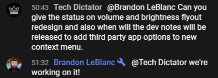 幸运的是,微软正在为这些弹出窗口设计新的设计,但它不会随 Windows 11 的 2021 年 10 月更新一起提供。在Windows Insider 网络广播中,微软的 Brandon LeBlanc 确认他们正在考虑针对音量和亮度弹出的新设计。
