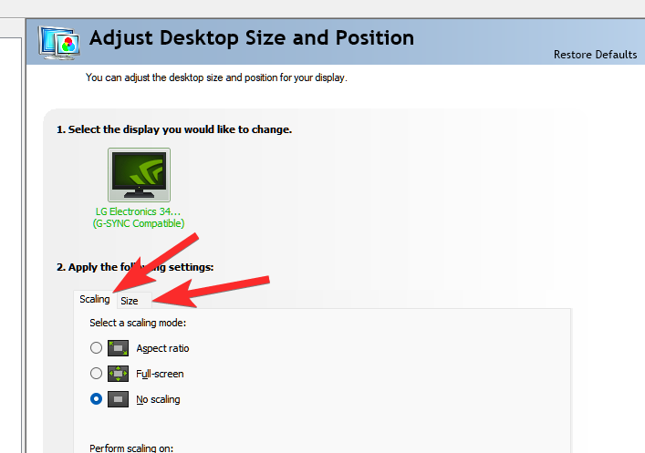 适当调整显示器的缩放比例和大小。