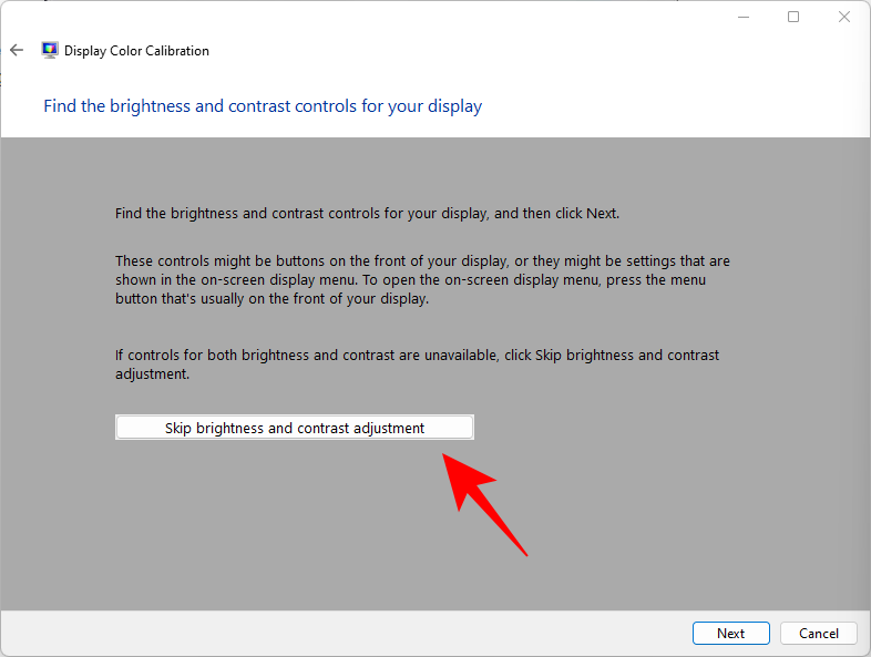 要开始调整亮度和对比度,请单击下一步。