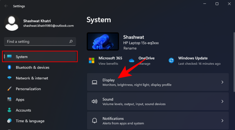 按Win + I打开设置,然后单击 显示。