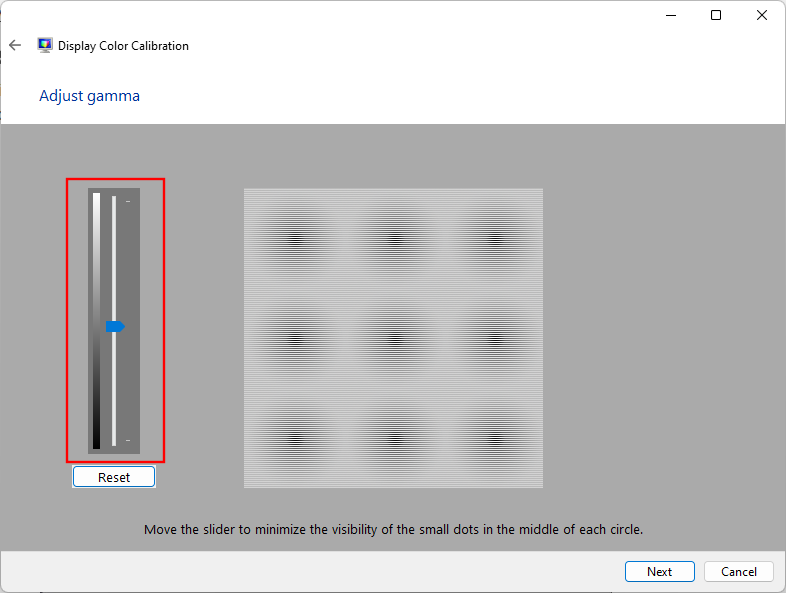 如果您不记得好的 Gamma 是什么样的,请单击“重置” 并返回,检查参考并重试。