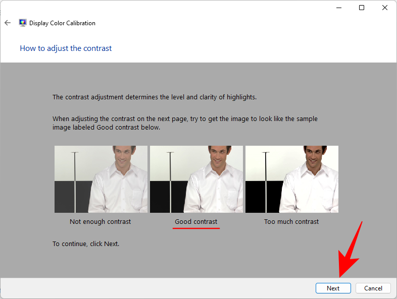 现在看看“良好的对比度”是什么样的。单击下一步。