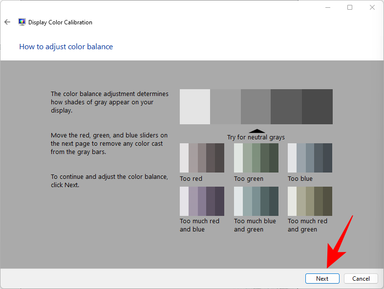 接下来的几个屏幕是关于正确获得不同的灰色阴影。这里的目的是获得中性灰色并去除其中的任何颜色投射。单击下一步。
