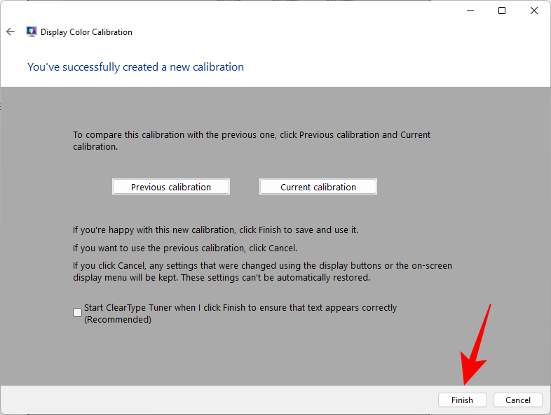 如果您对当前的校准感到满意,请继续并单击“ 完成”。