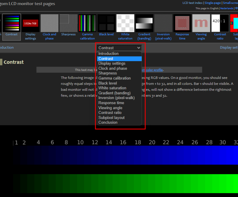 Lagom 提供了有关显示器校准不同方面的非常详细的信息,例如调整锐度、伽马校正、对比度、白饱和度、黑电平等等,所有这些信息您都可以在他们的网站上阅读并调整您的相应地监视颜色设置。