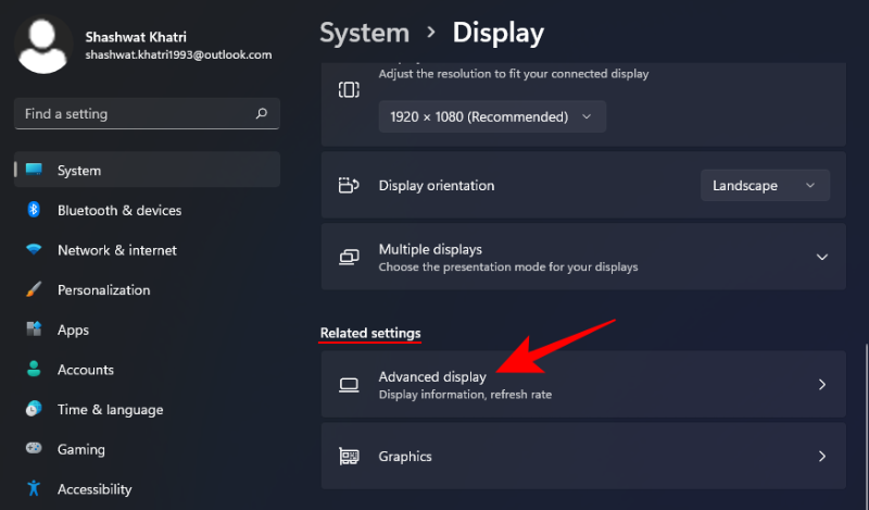 然后单击“相关设置”下的高级显示。