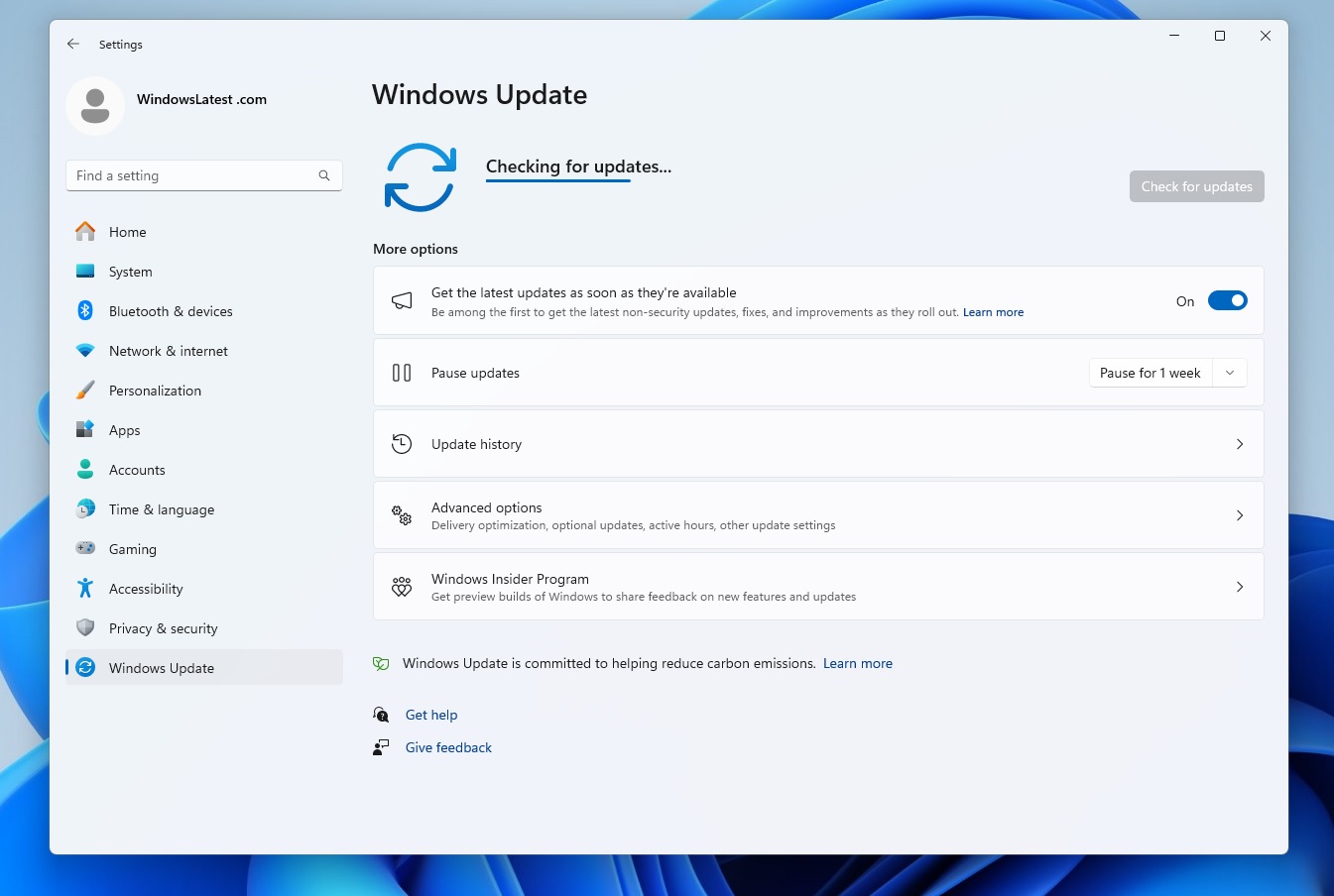 要下载并安装 Windows 11 Moment 5 功能更新,您可以下载 2024 年 3 月的累积更新并打开“在最新更新可用时立即获取”并检查更新。这将下载配置更新并启用 Moment 5 功能。
