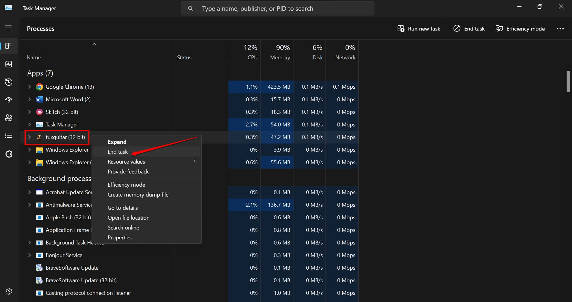 - 按 Ctrl +Shift+Esc 启动任务管理器。