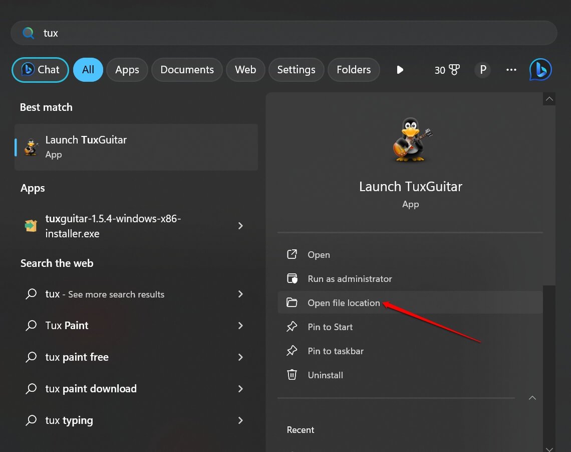 - 键入游戏/应用程序名称,然后单击打开文件位置。