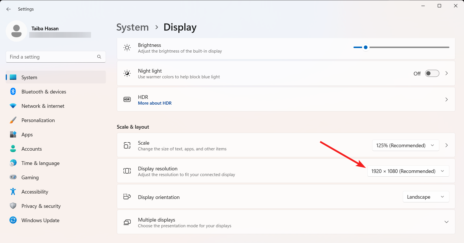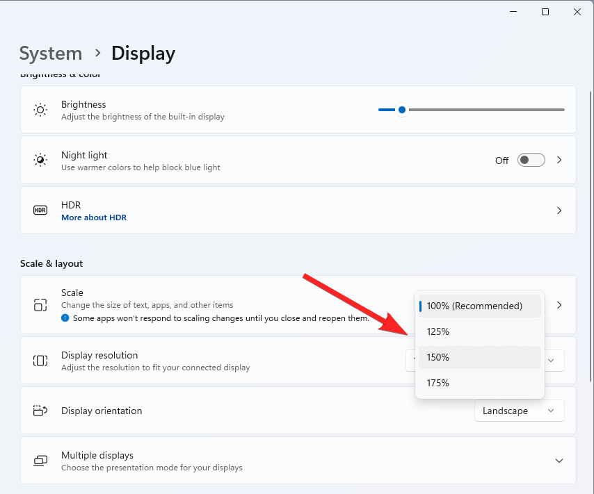 下一步是检查设备的缩放设置。确保它们设置为正确的设置,然后,如果没有,请使用正确的缩放比例。