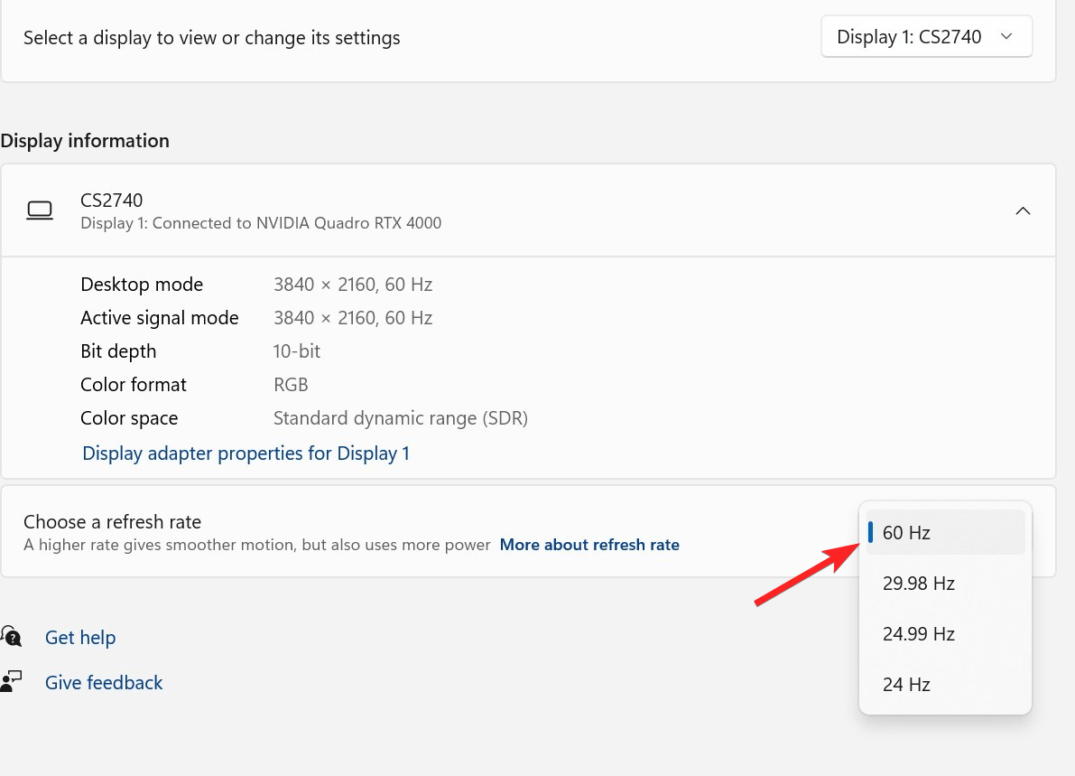 如果 Windows 11 上出现拉伸屏幕问题,检查设备的刷新率设置是您应该执行的下一个故障排除步骤。