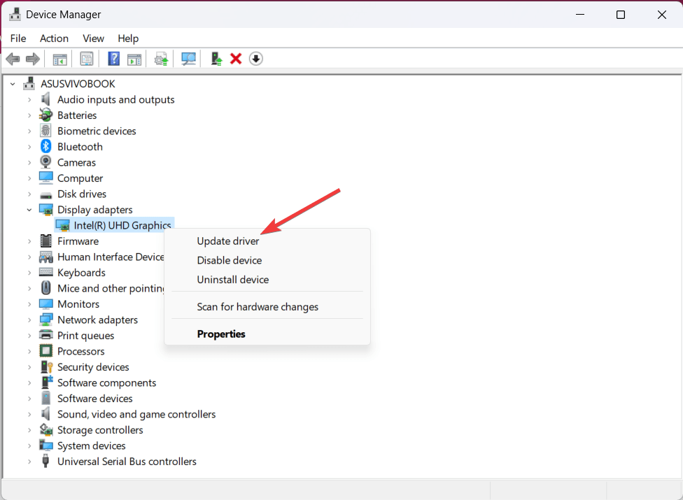 - 现在,您需要右键单击图形驱动程序,然后从上下文菜单中选择“更新驱动程序”选项。