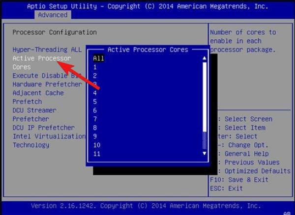 找到“活动处理器内核”或“多核支持”设置。这些选项可能位于“高级 CPU 功能”或“核心技术”下。将设置值调整为“全部”或最大可用内核数。