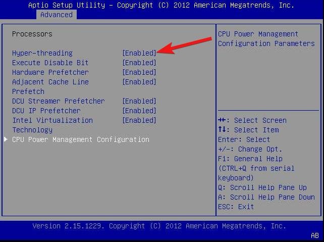 此功能还必须通过系统 BIOS 启用。为此,您需要找到 BIOS 的超线程设置,然后选择“已启用”选项。