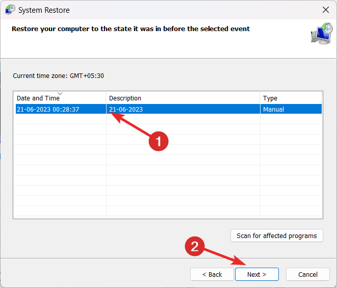 - 选择要应用的系统还原点,然后按下方的“下一步”按钮。