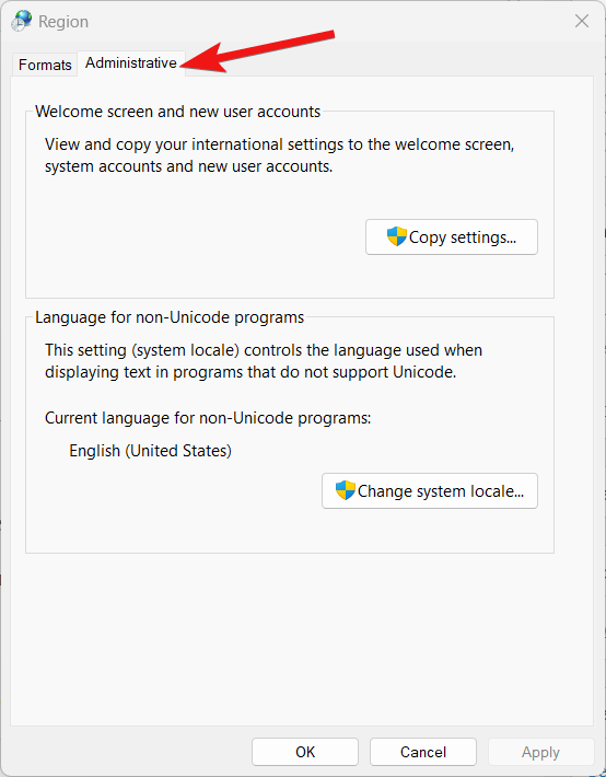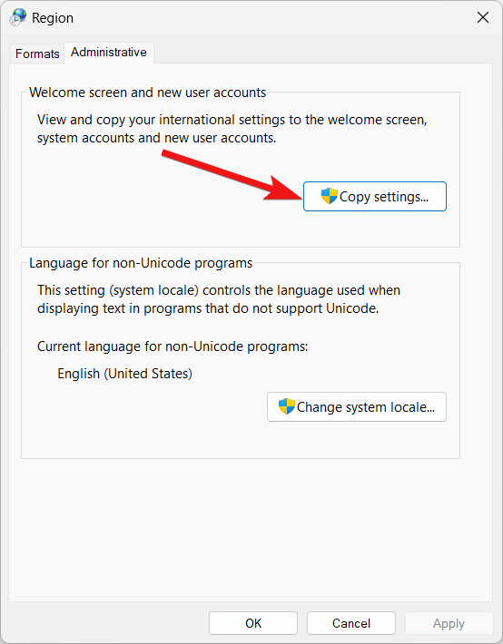 - 现在按“欢迎屏幕和新用户帐户”部分下的“复制设置”按钮。