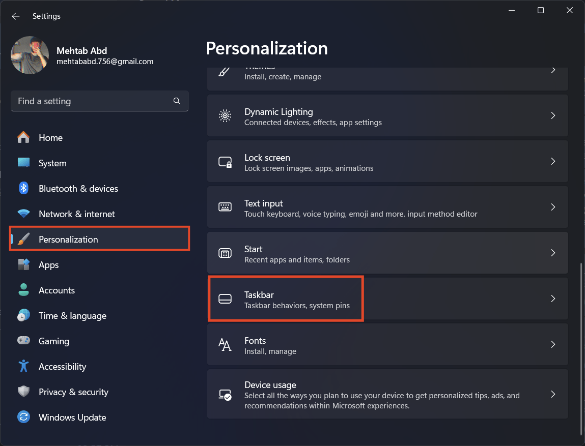 - 单击任务栏。或者,右键单击任务栏,然后选择任务栏设置。