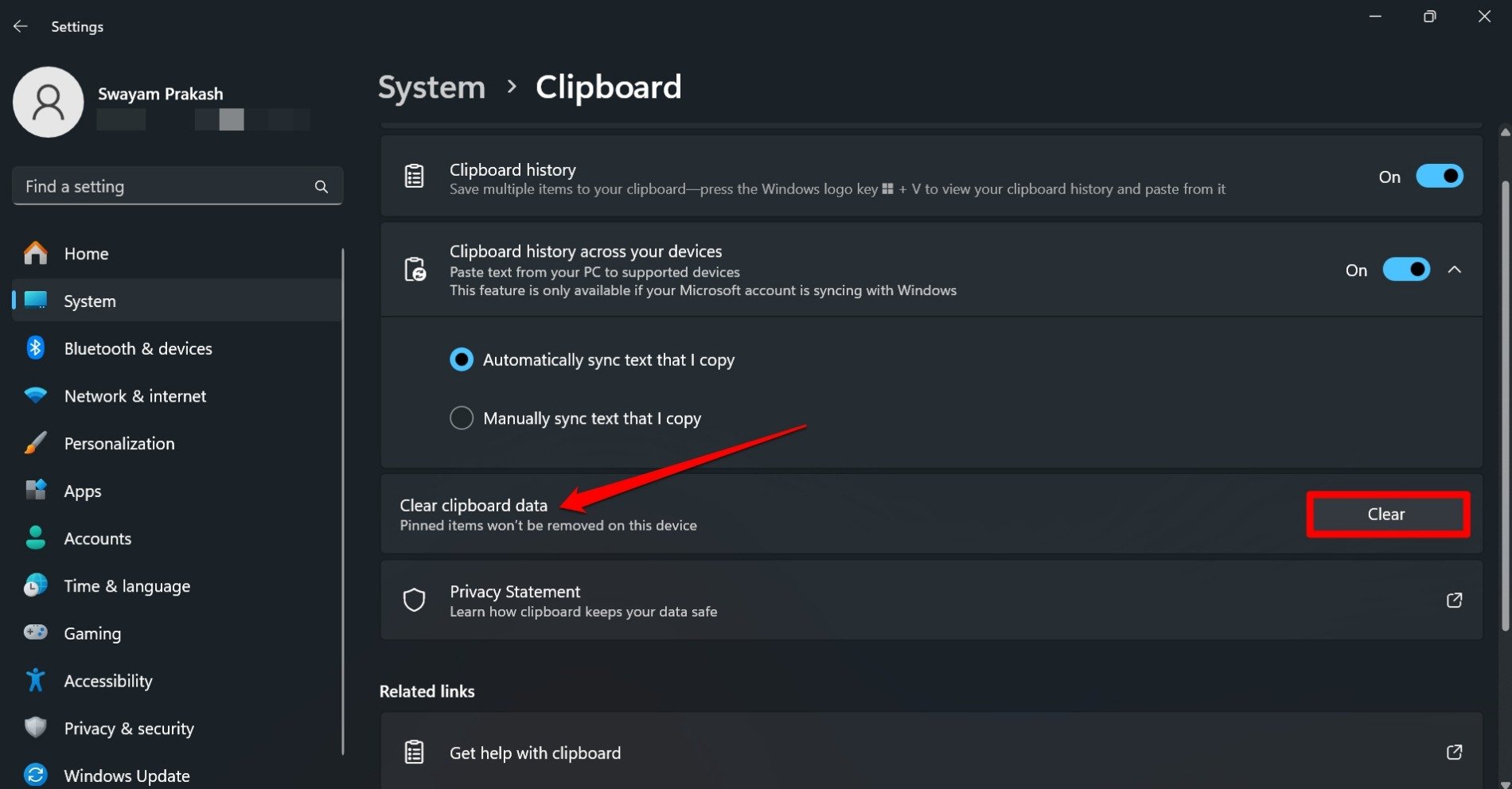 清除 Windows 11 上的剪贴板历史记录以删除冗余和损坏的数据。这是使复制粘贴功能再次起作用的有效故障排除提示。