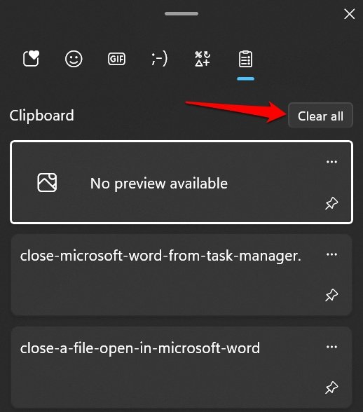 这是您可以遵循的另一种方法。按 Windows + V 键立即查看剪贴板。出现后,单击按钮“全部清除”。
