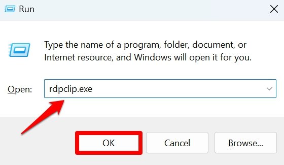 - 键入 rdpclip.exe 并按 Enter 键以重新激活该过程。
