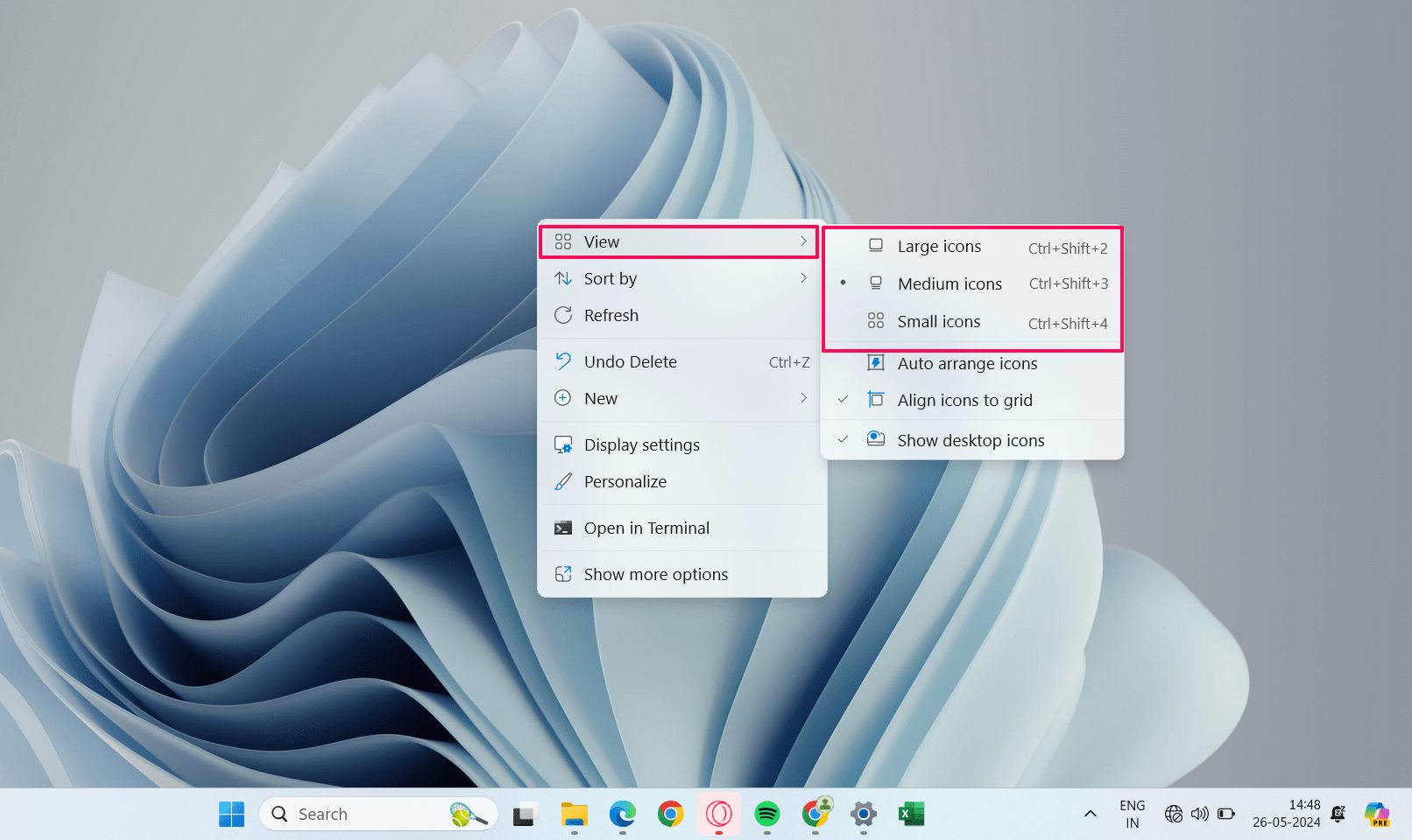 现在我们已经发现了如何更改 Windows 11 PC 上的图标。但是,如果要更改桌面和文件资源管理器上的图标大小怎么办?幸运的是,您可以根据需要自定义图标大小。