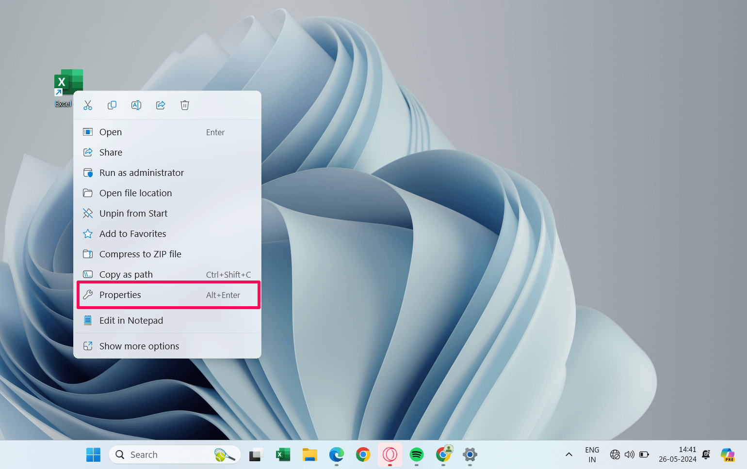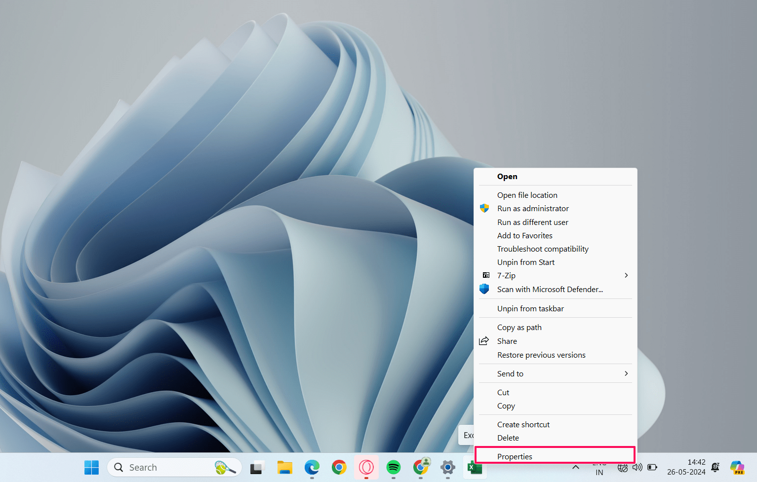 同样,可以使用“属性”菜单自定义固定到任务栏的单个应用的图标。这是如何做到的。