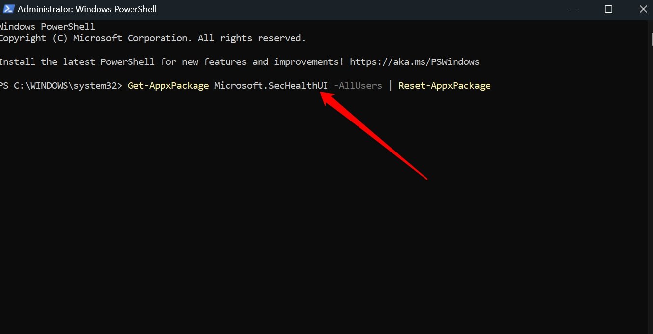 Get-AppxPackage Microsoft.SecHealthUI -AllUsers | Reset-AppxPackage