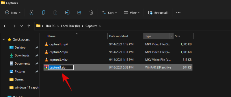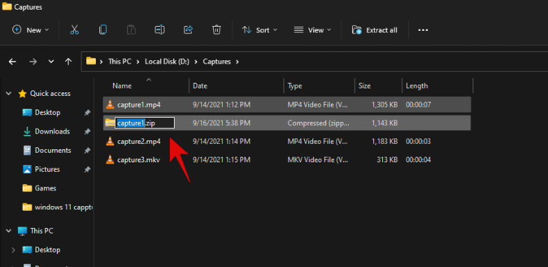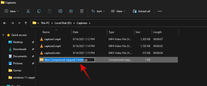 该文件现在将被压缩为 .ZIP 格式。输入文件的相关名称,完成后按键盘上的 Enter 键。
