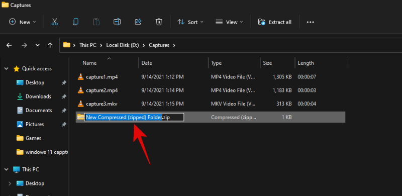输入新压缩文件夹的名称,然后按键盘上的 Enter。