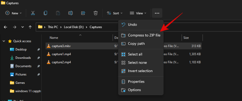 现在单击右上角的“3 点”菜单图标,然后单击“压缩为 .ZIP 文件”。
