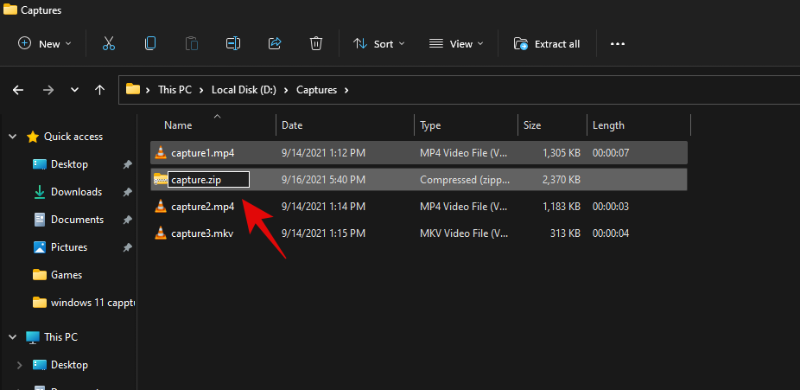 现在将在同一位置创建一个包含所有选定文件的新文件夹存档。输入所需的名称,然后按键盘上的 Enter。