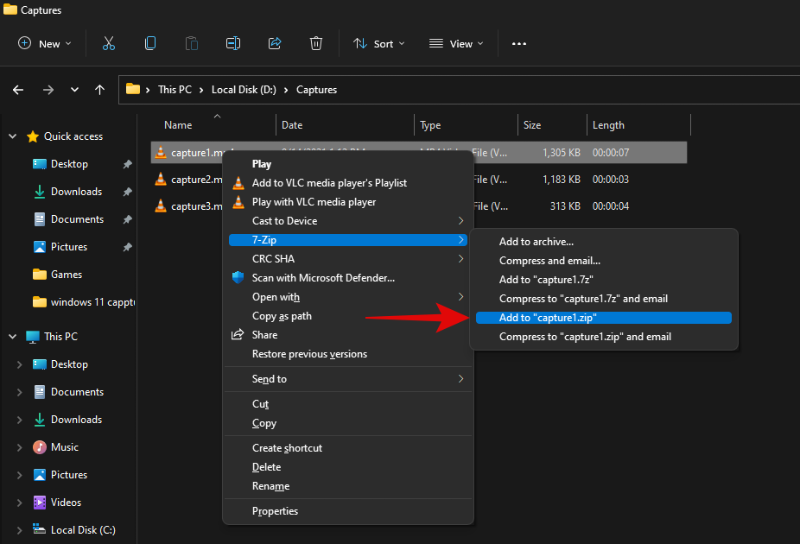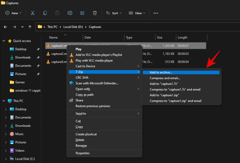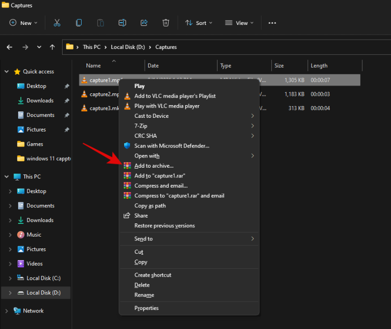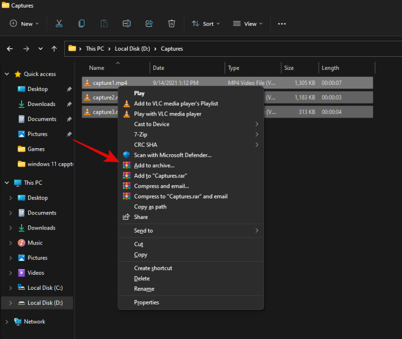 在上下文菜单中单击 WinRAR 列出的“添加到存档”。