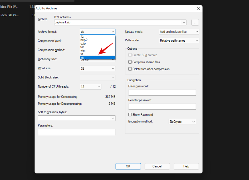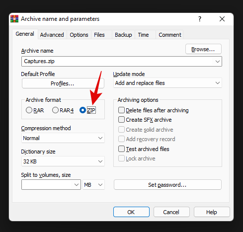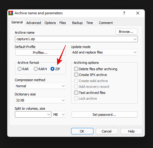 选择“ZIP”作为“存档格式”。