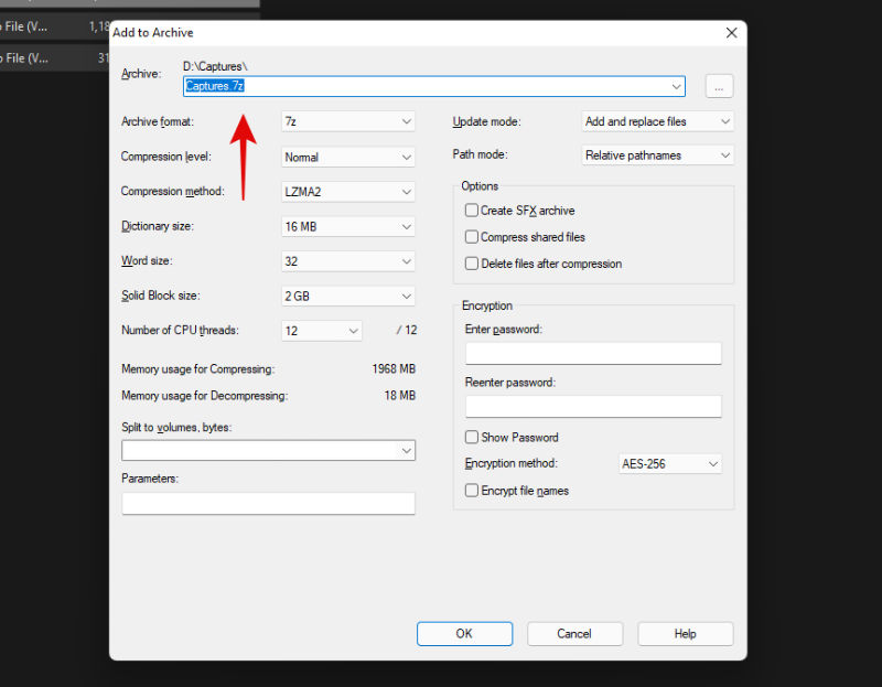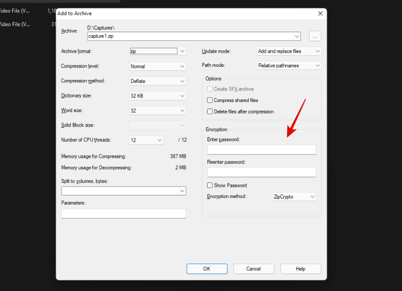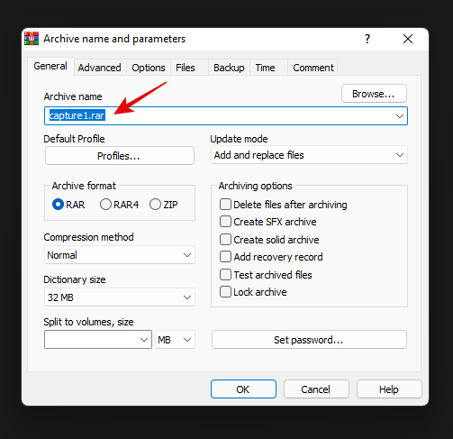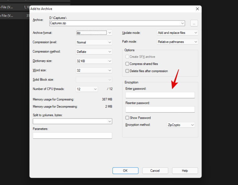 如果需要,为您的存档输入并设置密码。