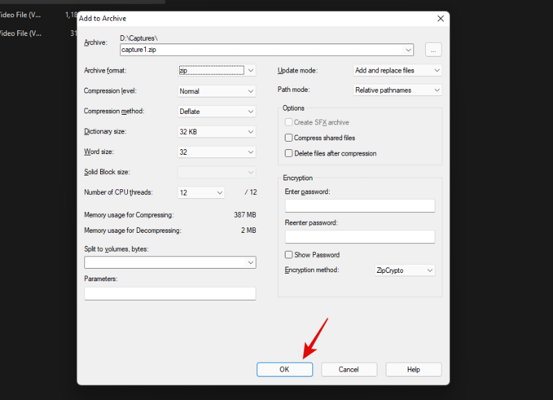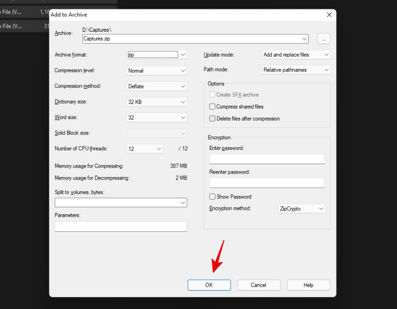 现在单击“添加到“ABC.ZIP””以使用当前目录的名称创建存档。