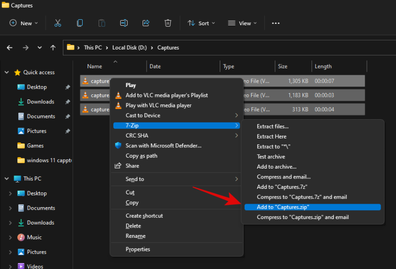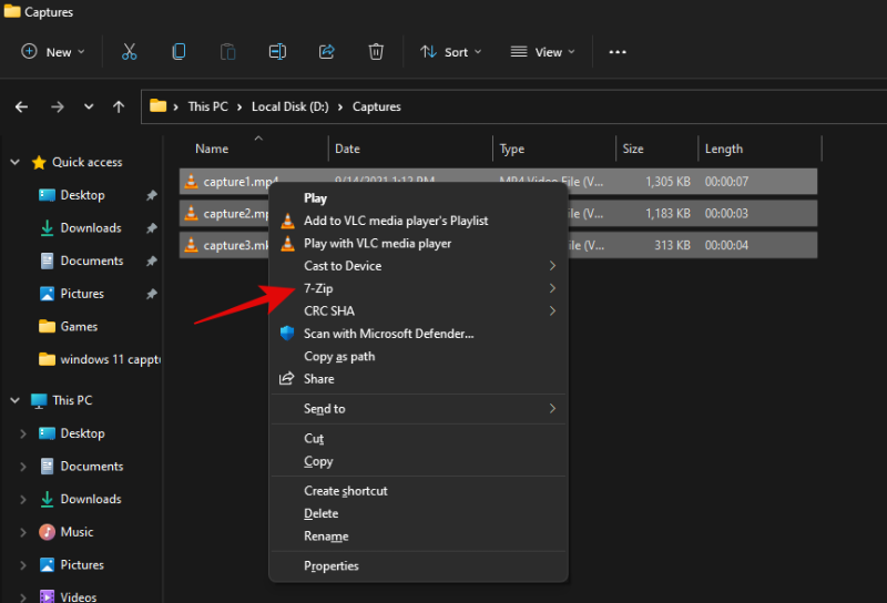 使用上面的链接安装 7-Zip 并选择您要压缩的所有文件。