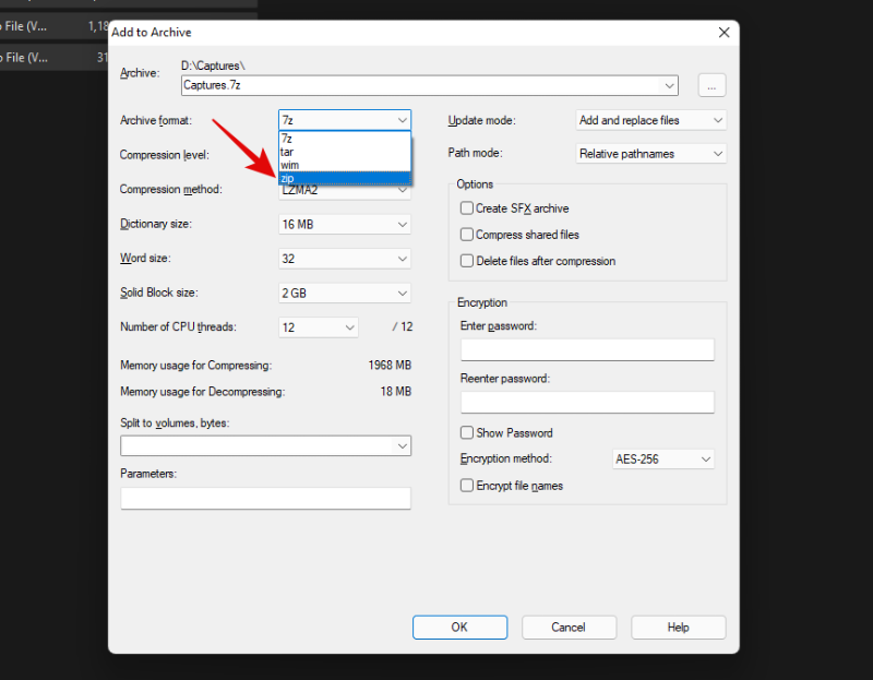 选择 ZIP 作为您的压缩方法。