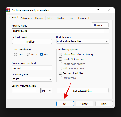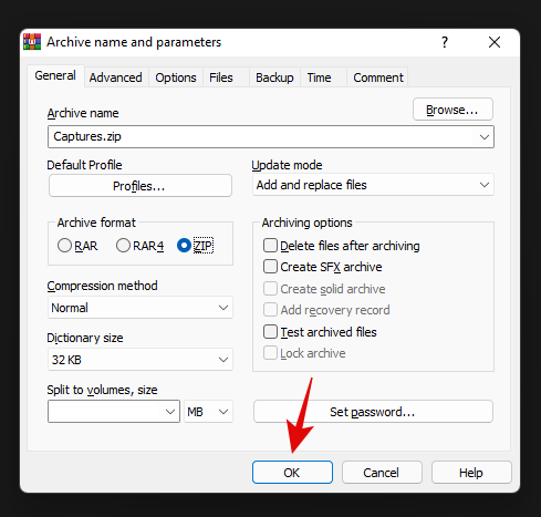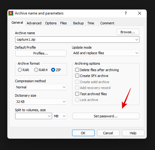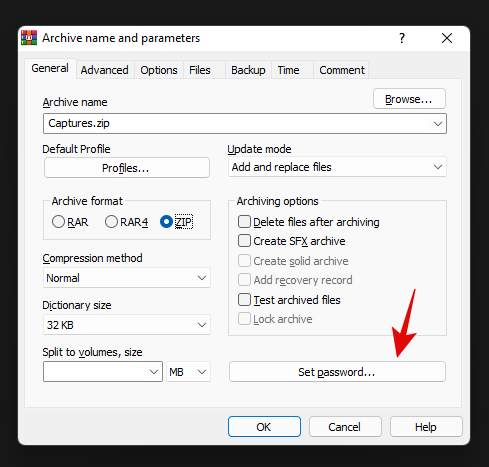 如果您想为新存档添加密码,请单击“设置密码”并按照说明进行操作。