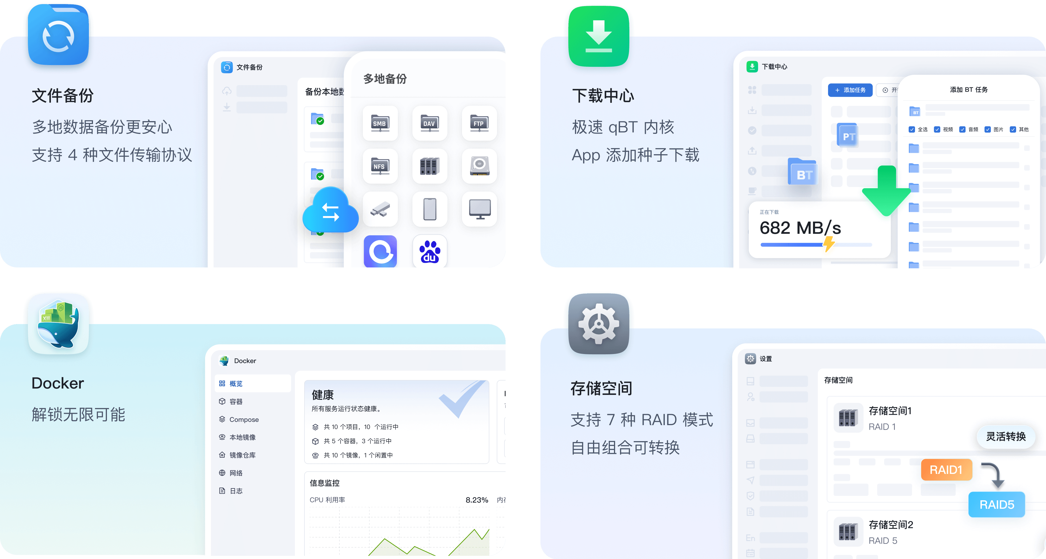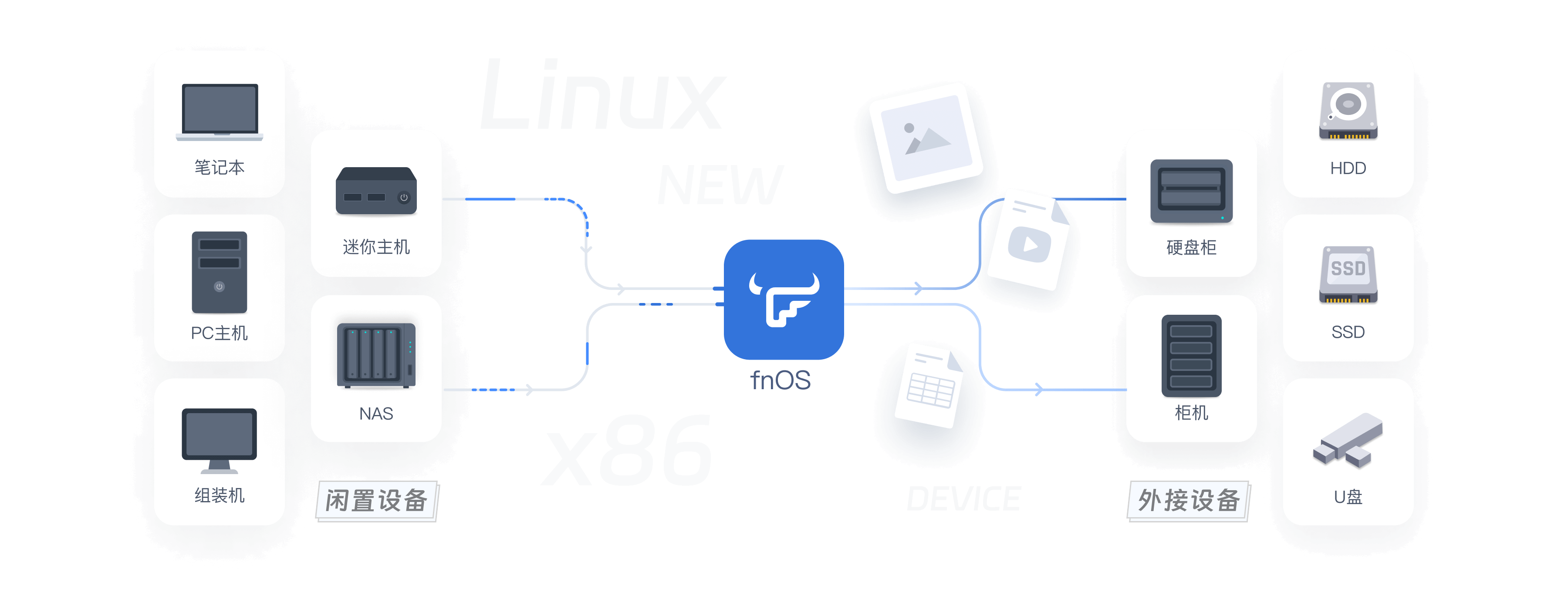 兼容主流 x86 硬件,自由组装 NAS,灵活扩展外部存储