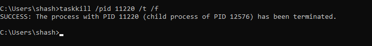 taskkill /pid 'processid' /t /f