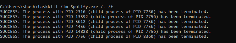如果您想知道/tand/f是什么,/t是确保所有子进程也关闭,而/f确保进程被强制关闭。