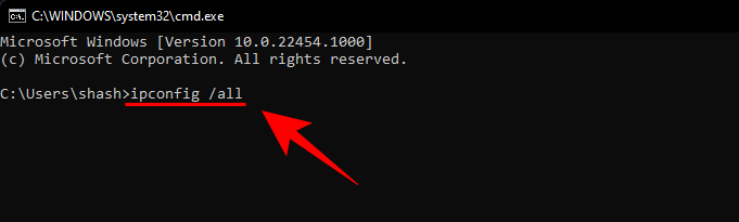 方法 #05:使用命令提示符或 PowerShell(使用“ipconfig”命令)