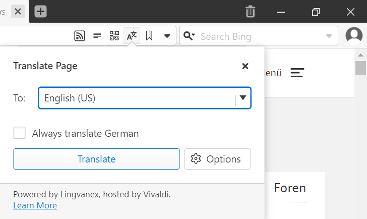 Vivaldi今年早些时候在 Vivaldi 4.0 中引入了翻译功能,并改进了Vivaldi 4.2 中的功能,因为它添加了翻译网页(而不仅仅是完整网站)上的文本位的选项。