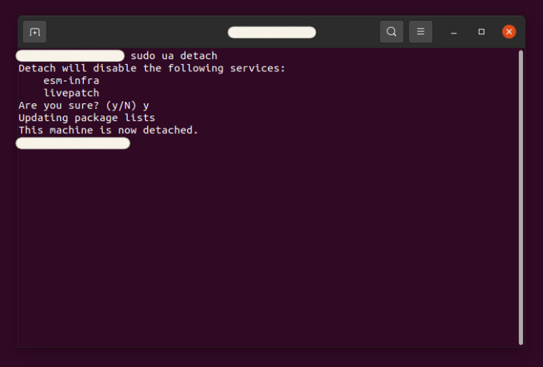 如果出于某种原因,您想将计算机与 Ubuntu Advantage 分离,只需再次打开终端并输入sudo ua detach。如果您要摆脱旧安装或扔掉旧计算机,则可能有必要这样做。