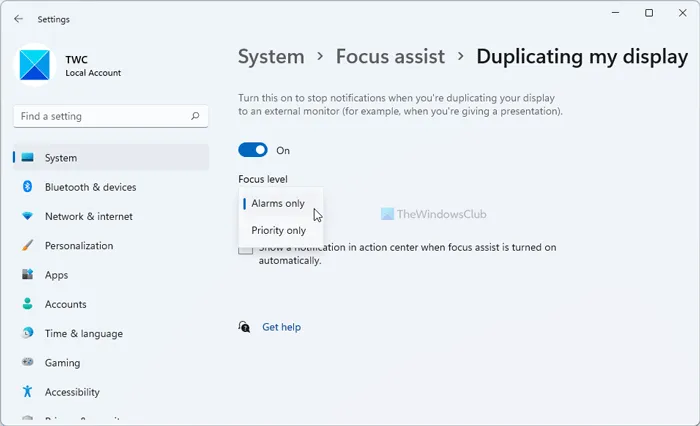 专注辅助通过阻止所有应用程序在您工作时显示任何通知来帮助您保持专注。因此,如果您关闭 Focus 辅助,您将继续接收来自您拥有的所有应用程序的所有通知。但是,您可以根据自己的时间和要求进行设置,以消除任何干扰。
