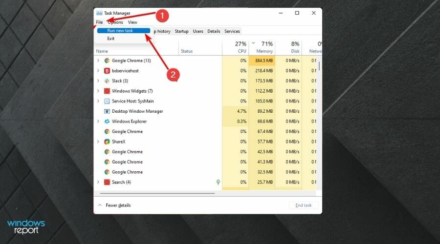 - 现在,单击左上角的文件选项卡,然后从溢出菜单中选择运行 新 任务选项。
