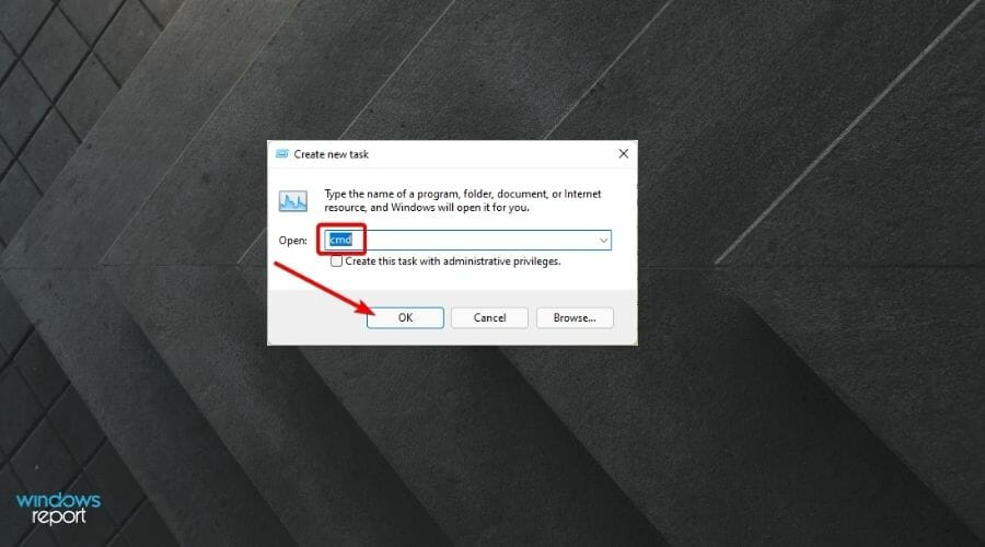 - 然后,在文本框中键入cmd并单击确定按钮或敲击Enter键盘。