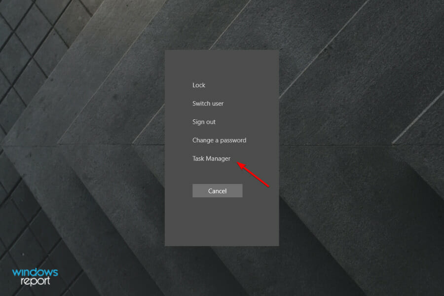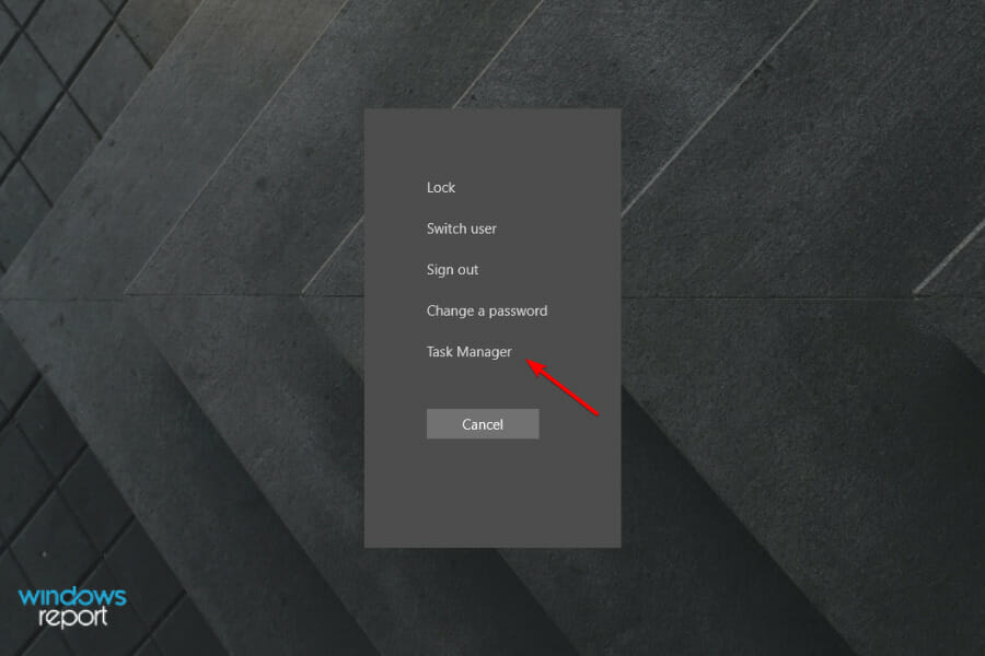 - 为此,请按键盘上的Ctrl+ Alt+Del快捷键以调出安全屏幕。然后,单击列表中的任务管理器选项。