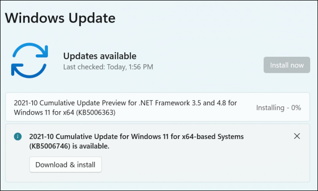 此更新被视为C 更新,这意味着 Microsoft 不会自动将其安装到您的计算机上。相反,您需要转到计算机上的 Windows 更新,然后单击手动检查更新。完成此操作后,查找名为 KB5006746 的更新并安装它。