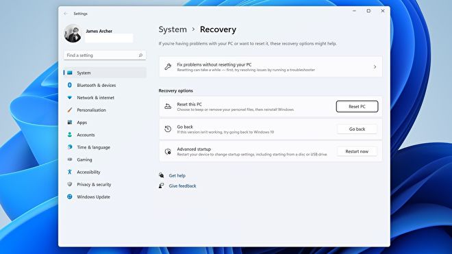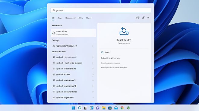 步骤 1:在 Windows 11 开始菜单的搜索栏中键入“返回”。这应该会显示重置此 PC 快捷方式,因此将其打开。您也可以在主 Windows 设置中导航到系统 > 恢复,但这种搜索方法更快。